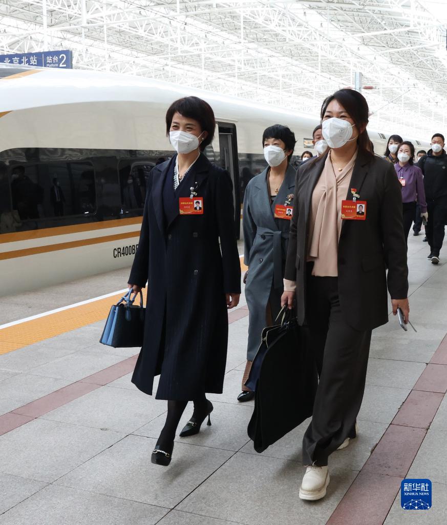 10月13日,来自内蒙古自治区的党的二十大代表乘高铁抵达北京北站。新华社记者 张玉薇 摄